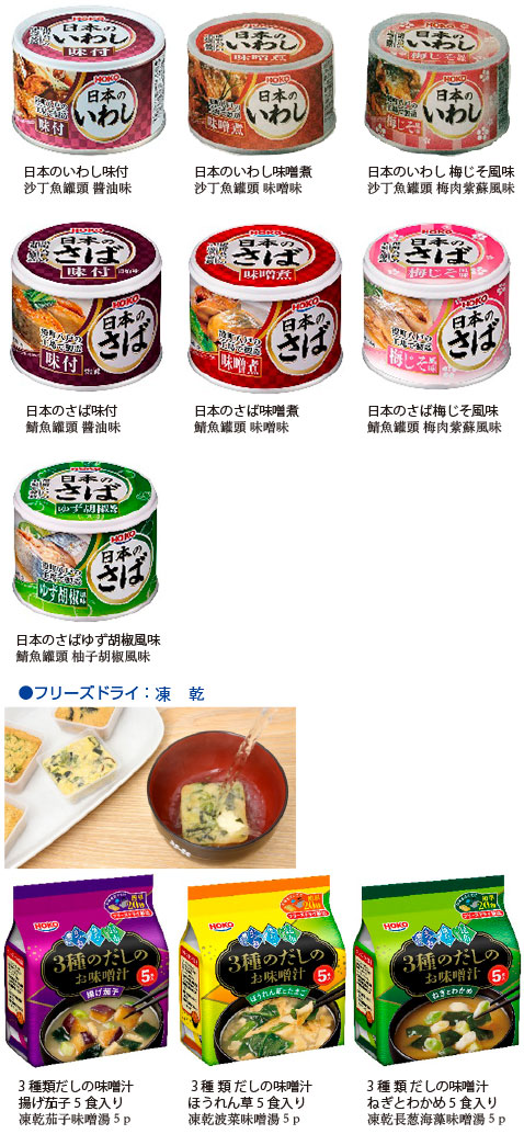 想料理沙丁魚和鯖魚等菜都很費時,但魚罐頭的話就很簡単了! 可以在短時間内快速準備出一道菜添加到餐桌上。 並且罐頭和凍干産品都可以長期保存,還可用于非常時期的充急食品。